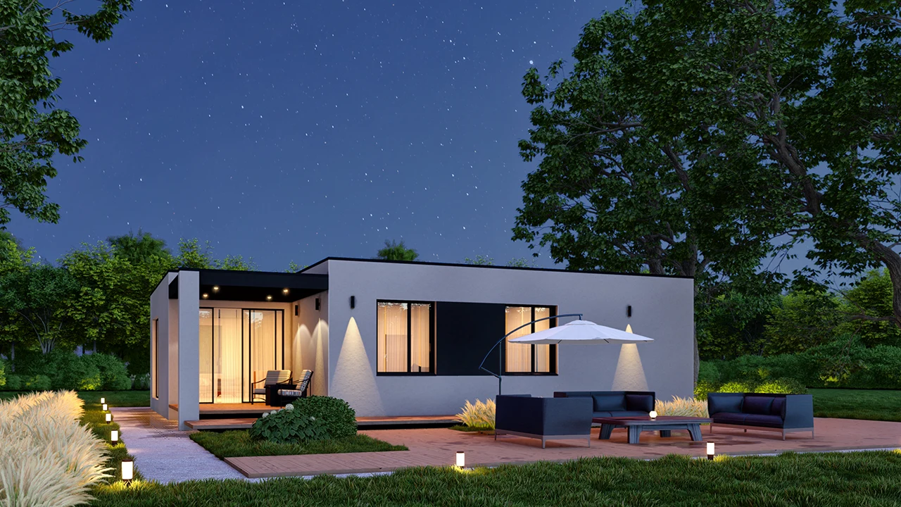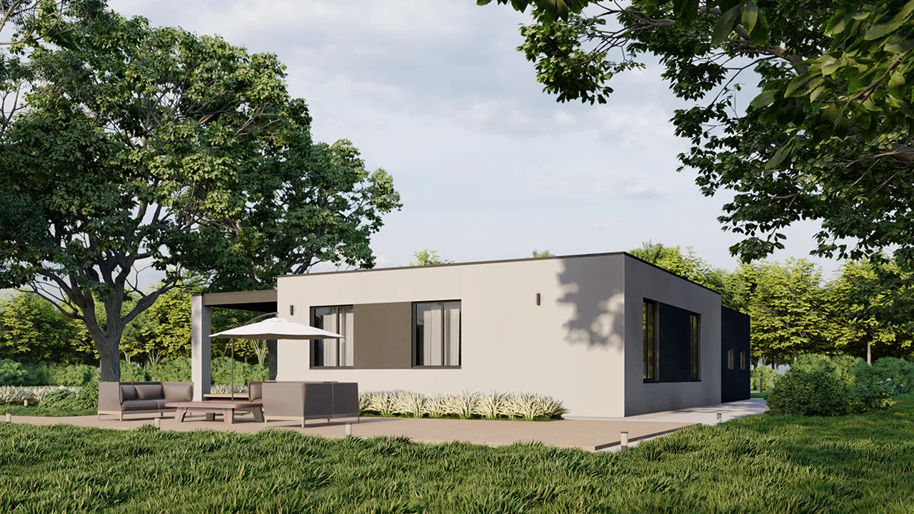 Проект разработан специально для концептуального коттеджного посёлка и содержит в себе продуманную планировку и внешнюю эстетику, которая позволяет гармонировать с окружающей природой.